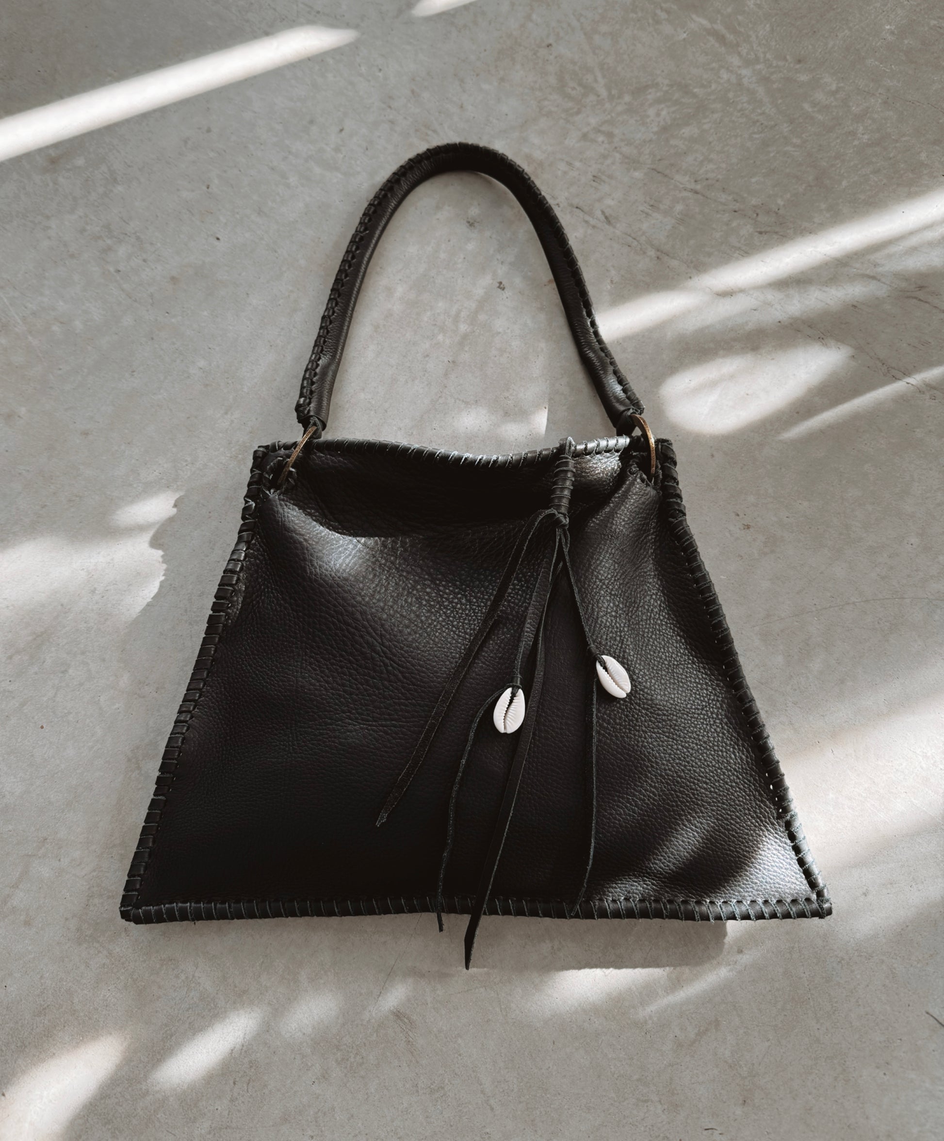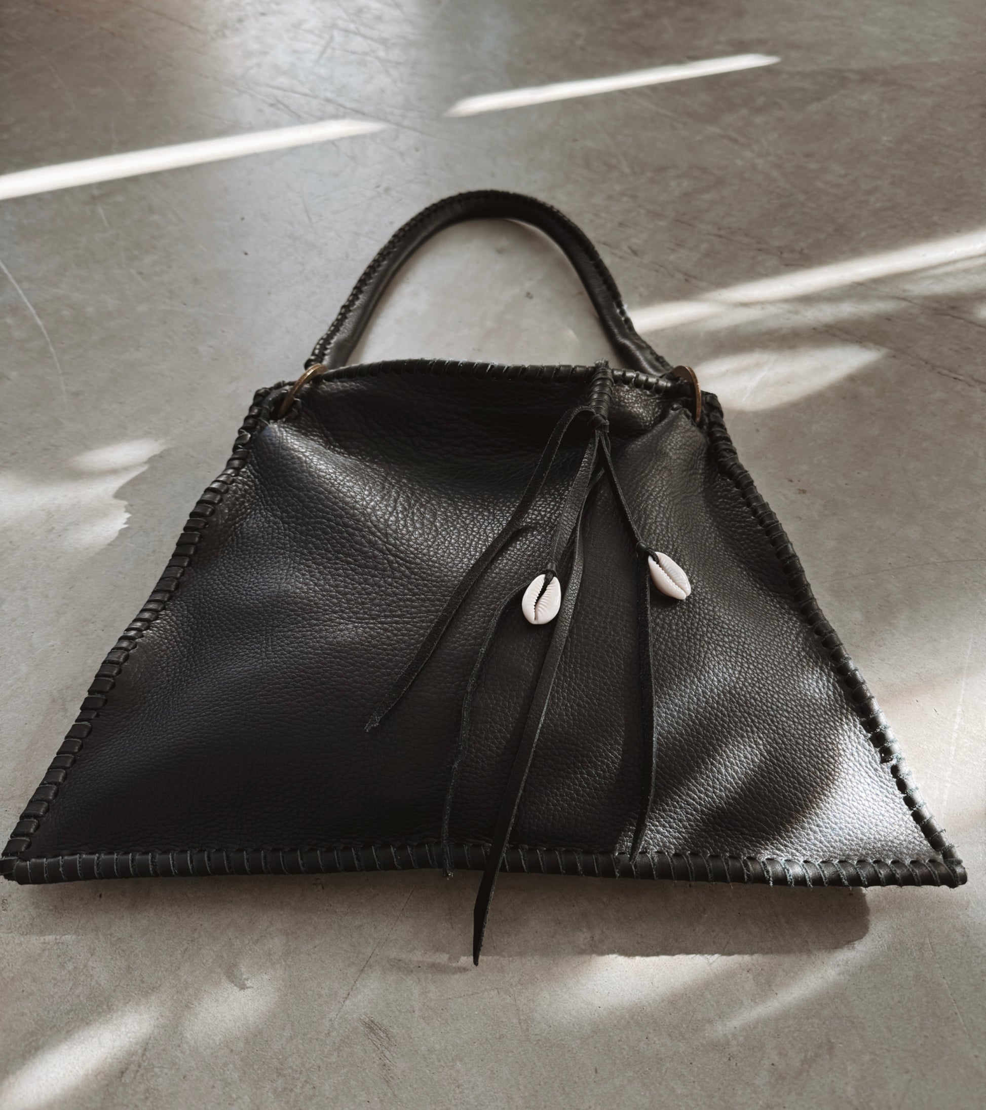 A tote with a triangular rectangular shape. I don’t know how els to say it ha ha! She’s fun and functional!