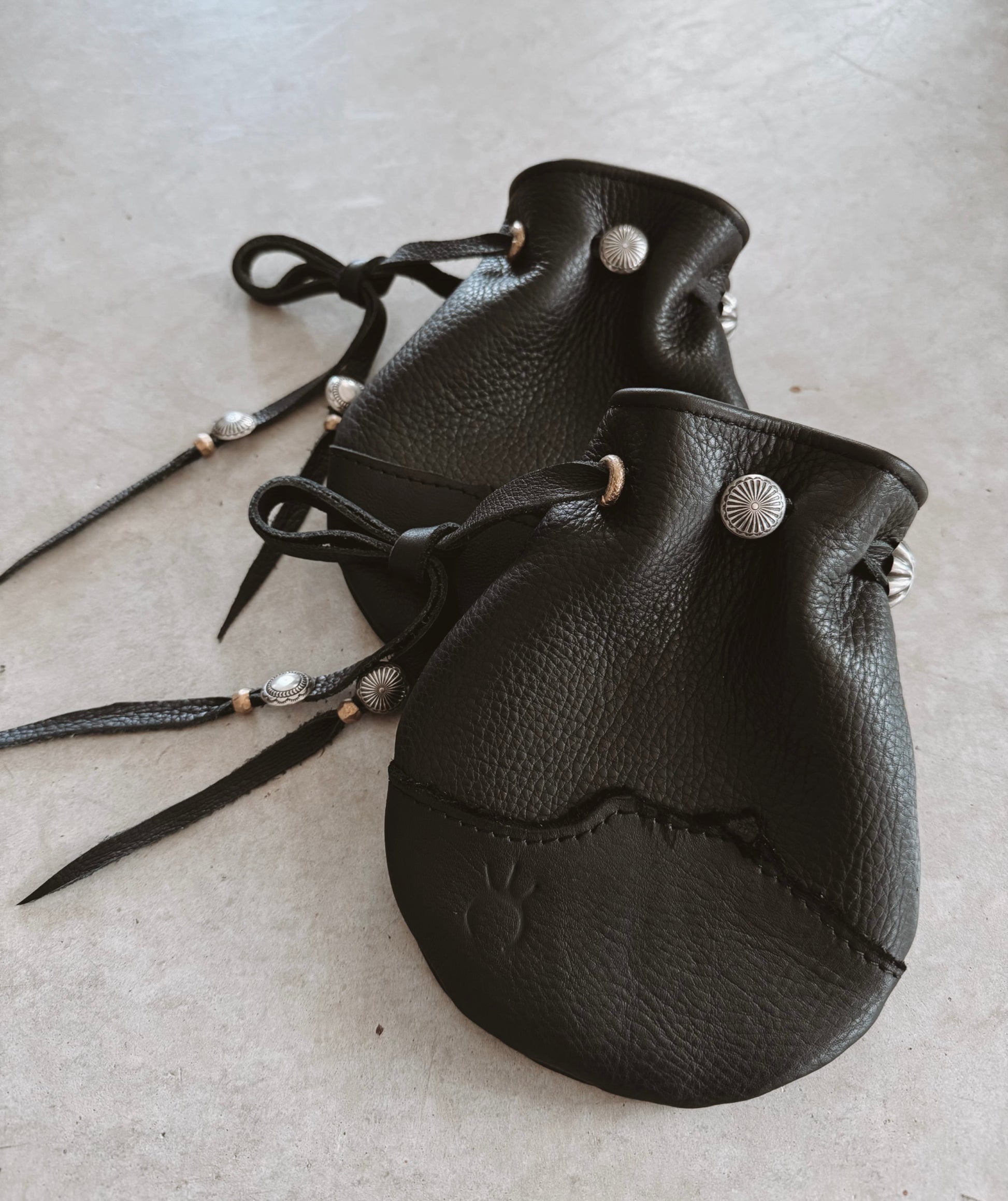 all pouches come with the same beads and conchos, they only vary with the roughed out design on the body. all come in the same size.